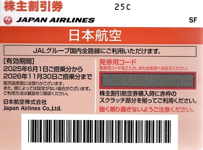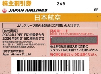 | 日本航空(JAL) 株主優待券 新 券 2026.11.30迄有効 | 300円 | 30枚以上 要電話確認 | |